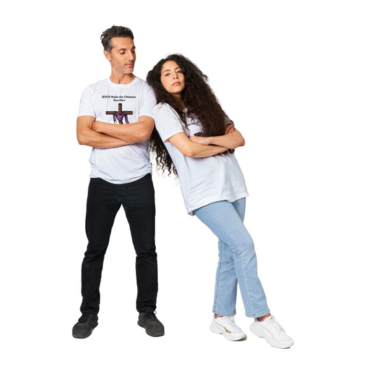 Premium Unisex Crewneck T-shirt - Cool Lima Bean - The "HE" made the Sacrifice