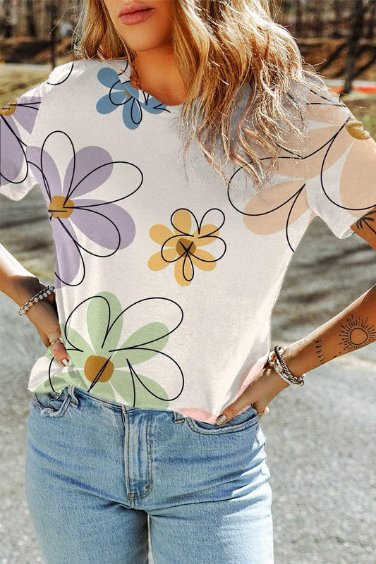 Printed Round Neck Short Sleeve T-Shirt