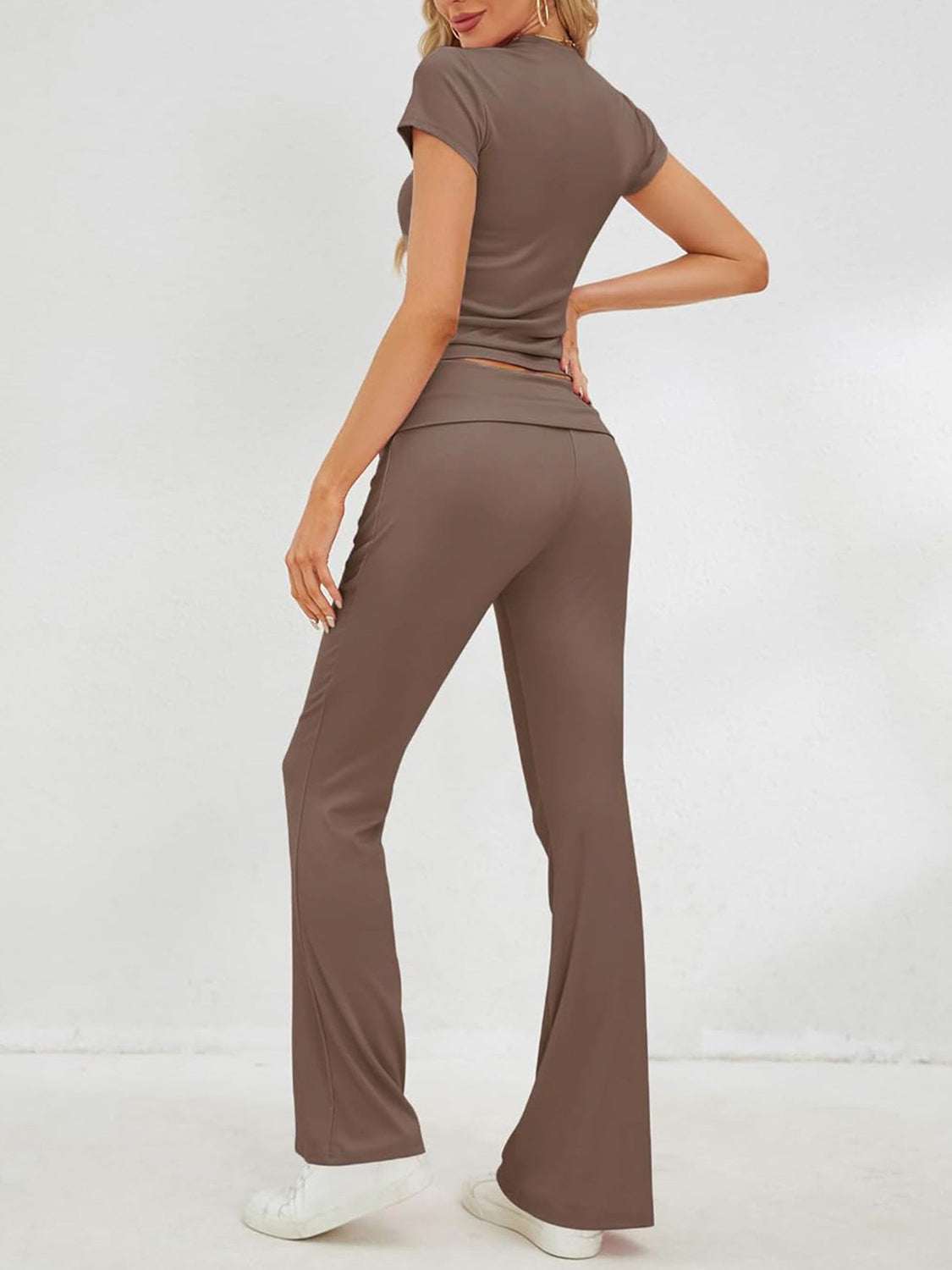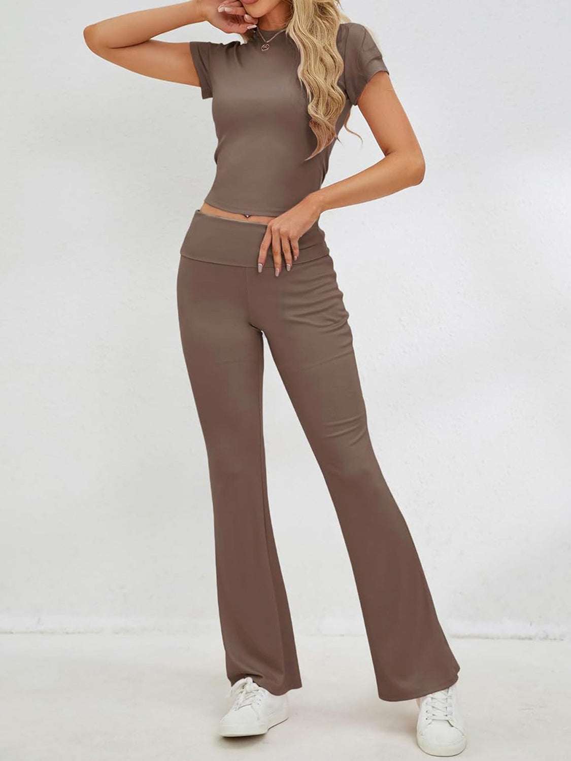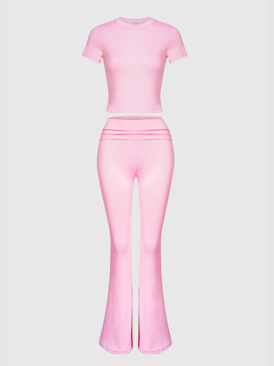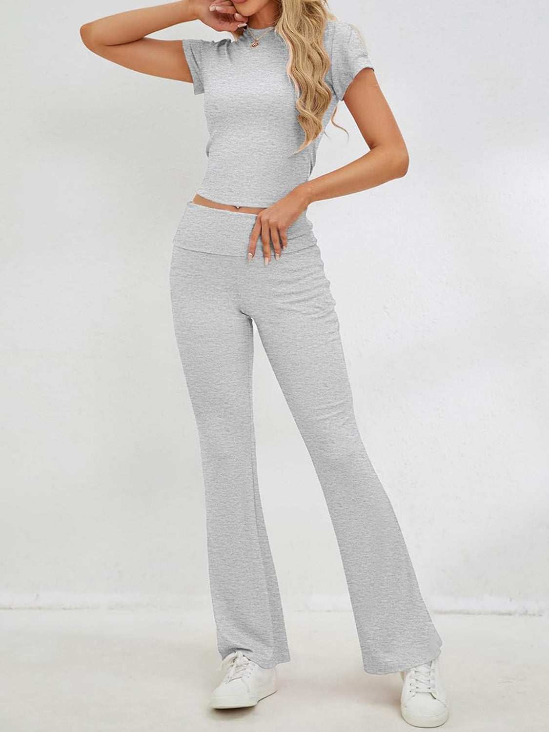 Round Neck Short Sleeve Top and Pants Set