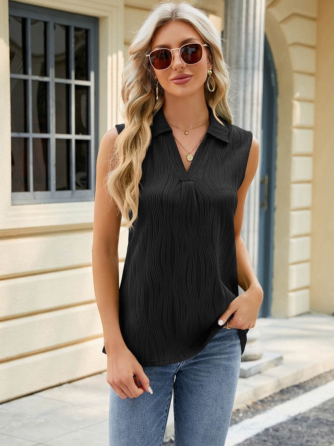 Textured Johnny Collar Tank